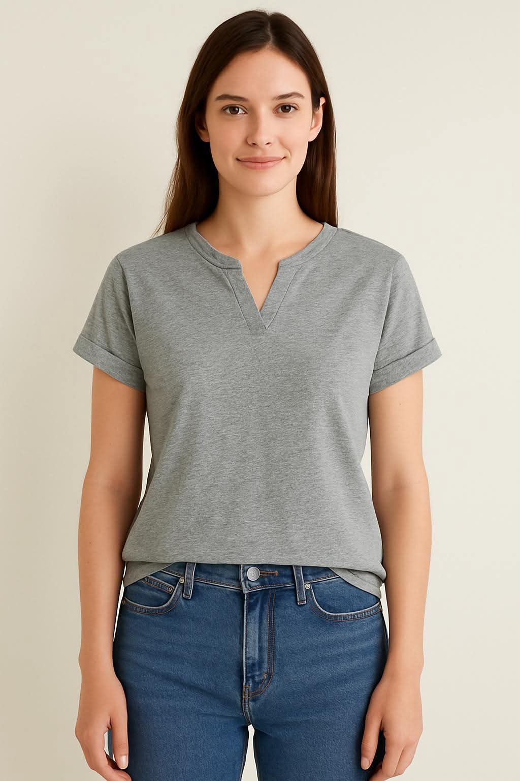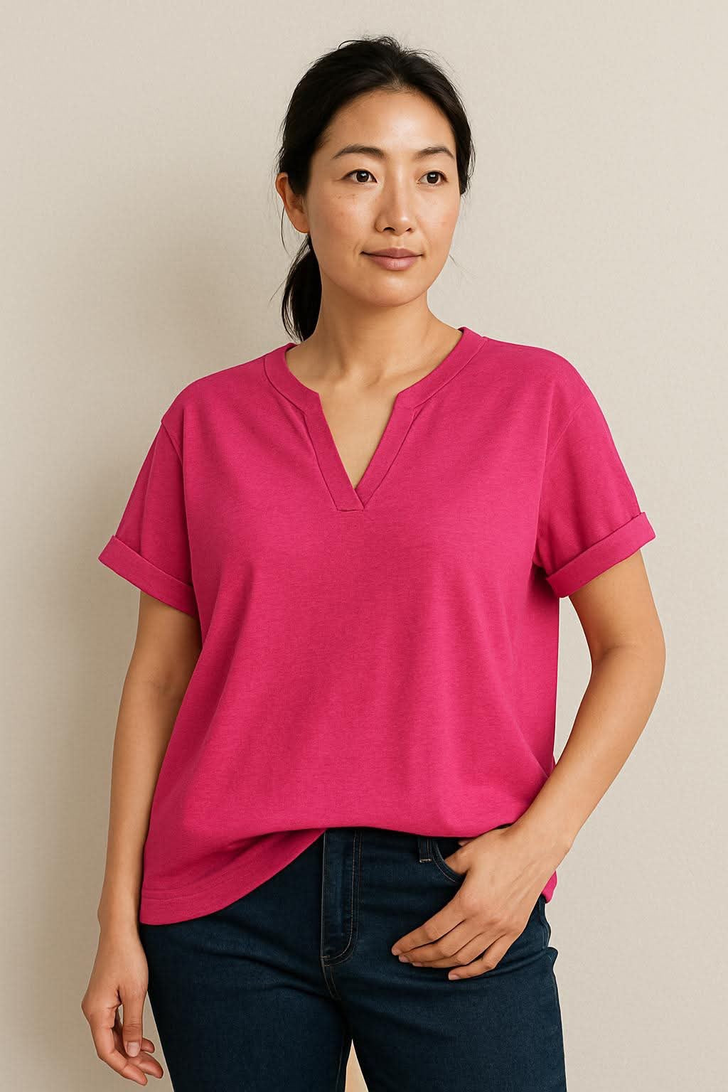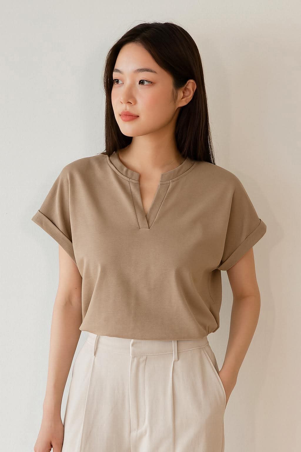 Featuring a flattering V-neckline and classic short sleeves, this blouse strikes the perfect balance between casual ease and polished charm. Its versatile design makes it easy to pair with jeans, trousers, or skirts—ideal for both workdays and weekends.