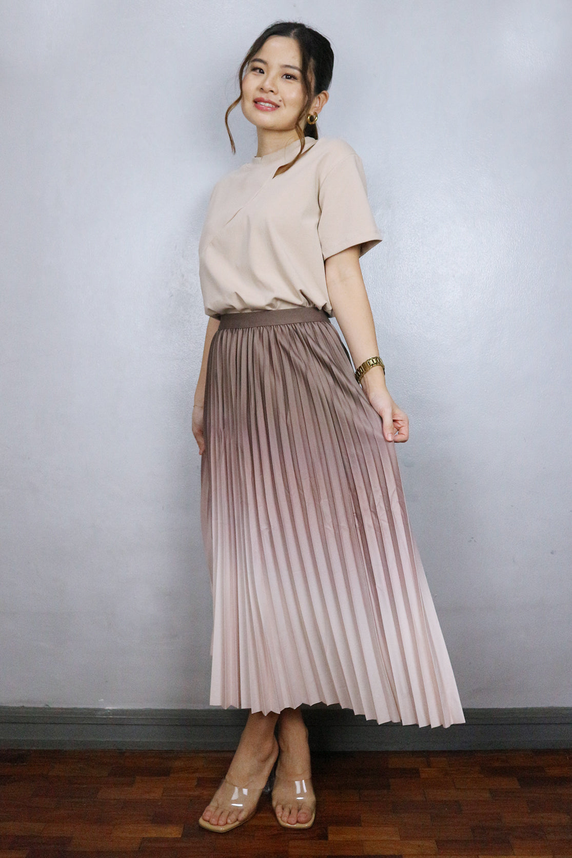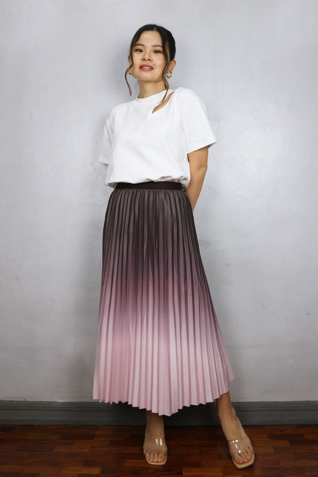 Unleash your inner fashionista with our Ombre Pleated Skirt. With a unique design and playful ombre effect, this skirt is sure to make a statement wherever you go. Perfect for any occasion, get ready to turn heads and have some fun!