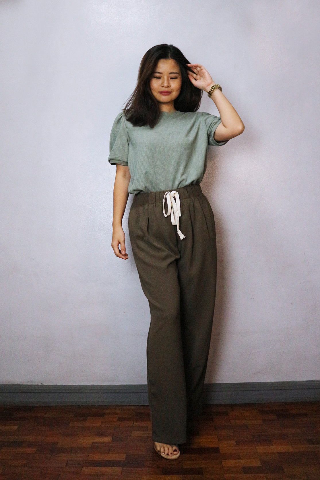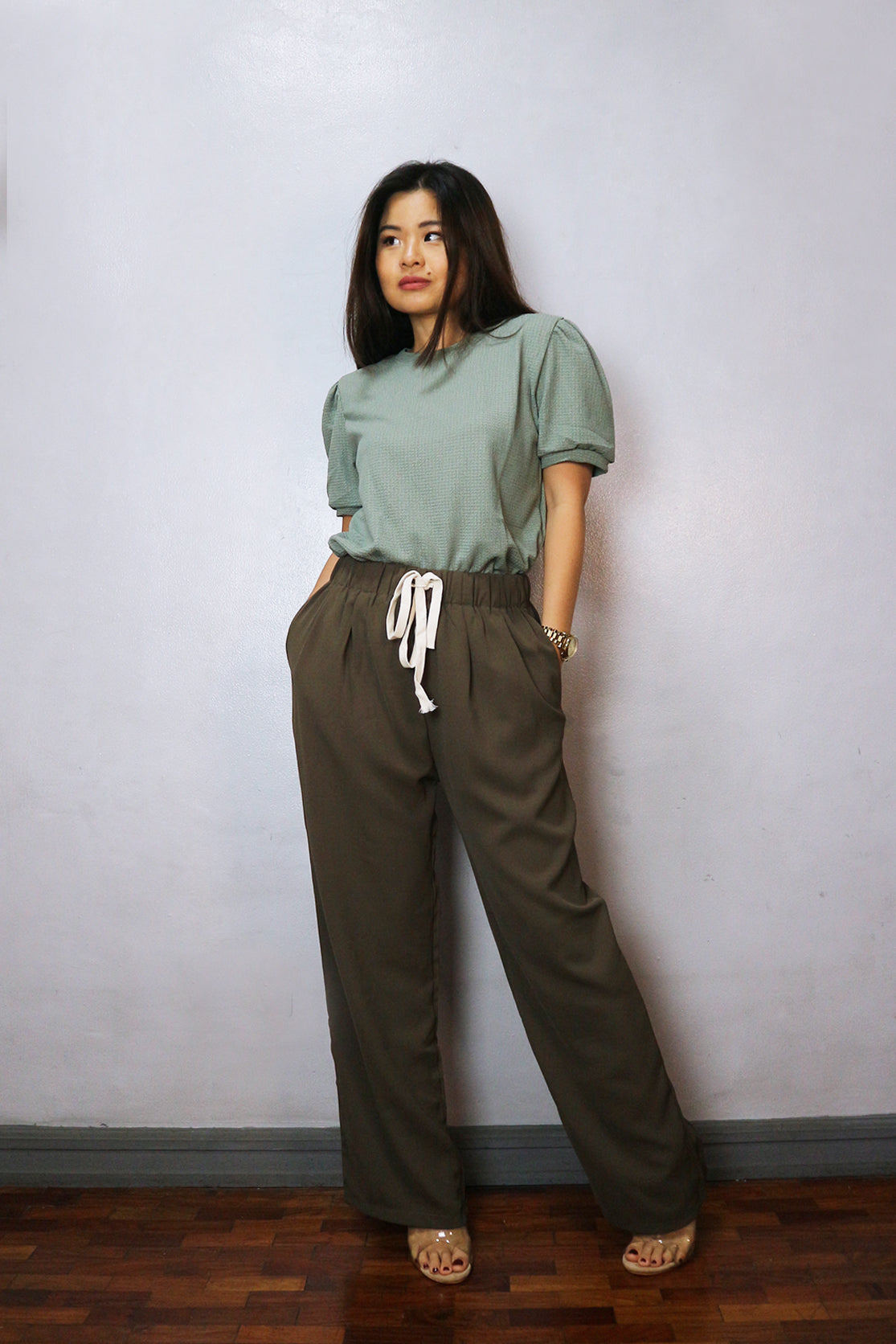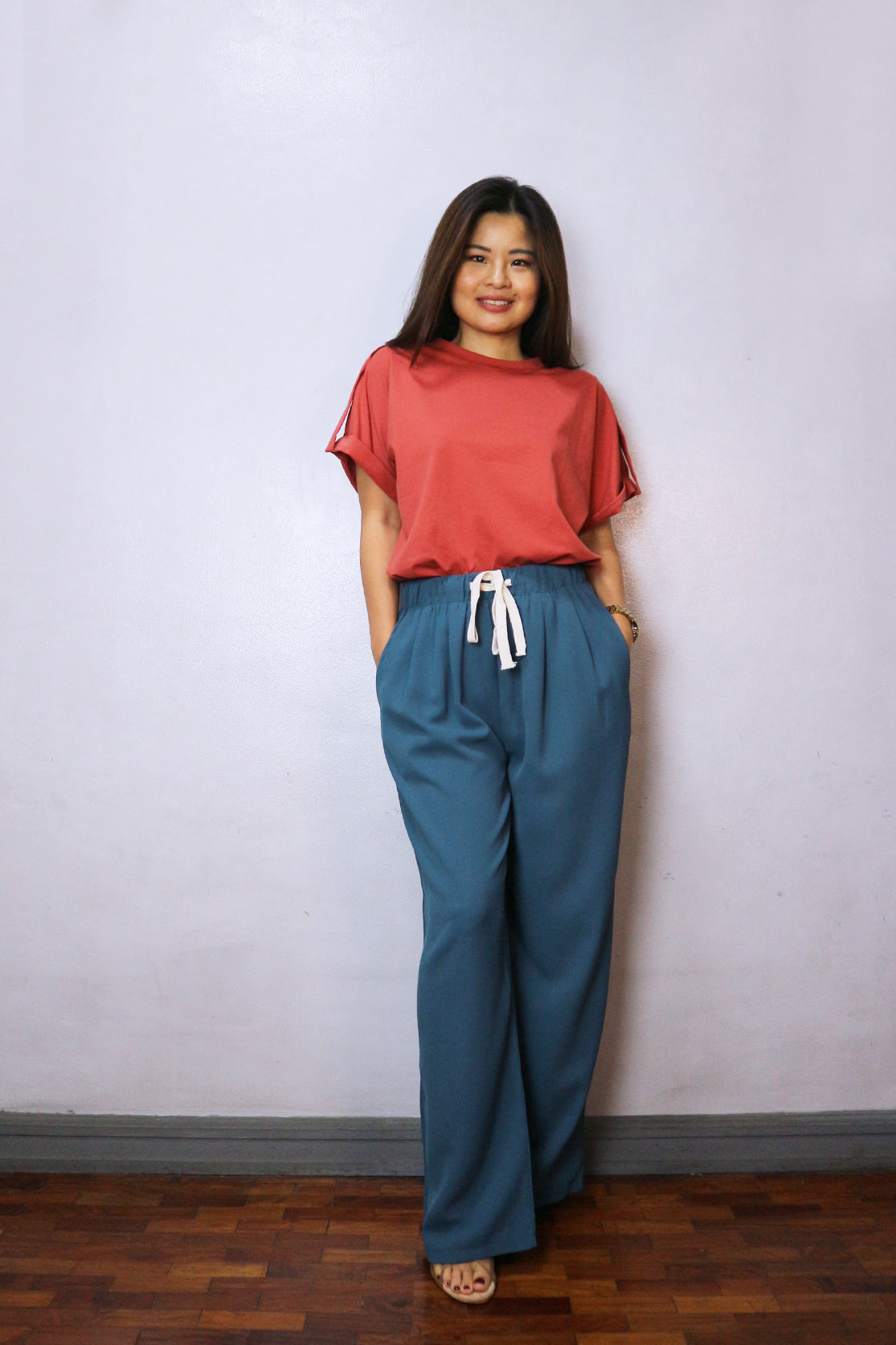 Drawstring and gartered waist