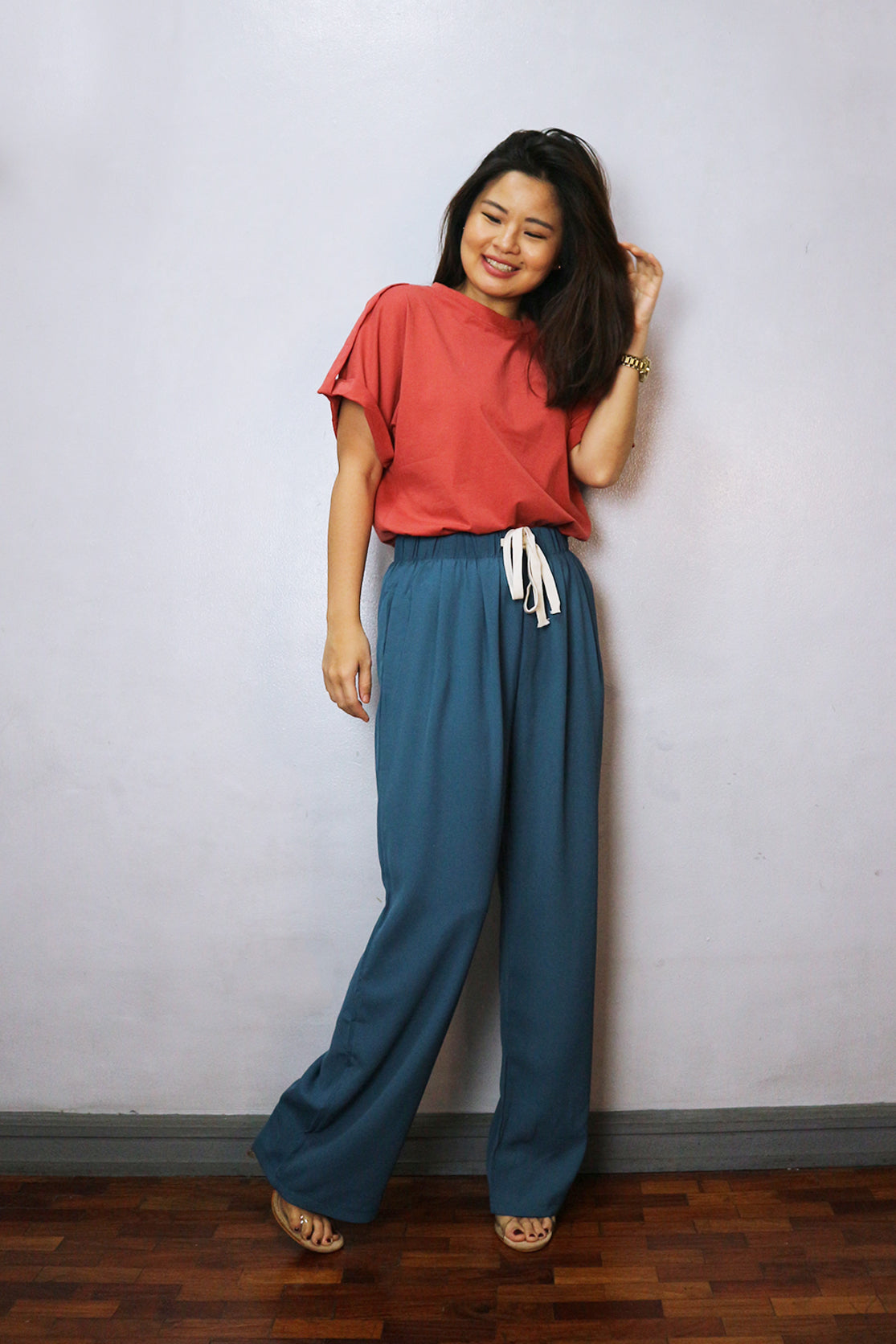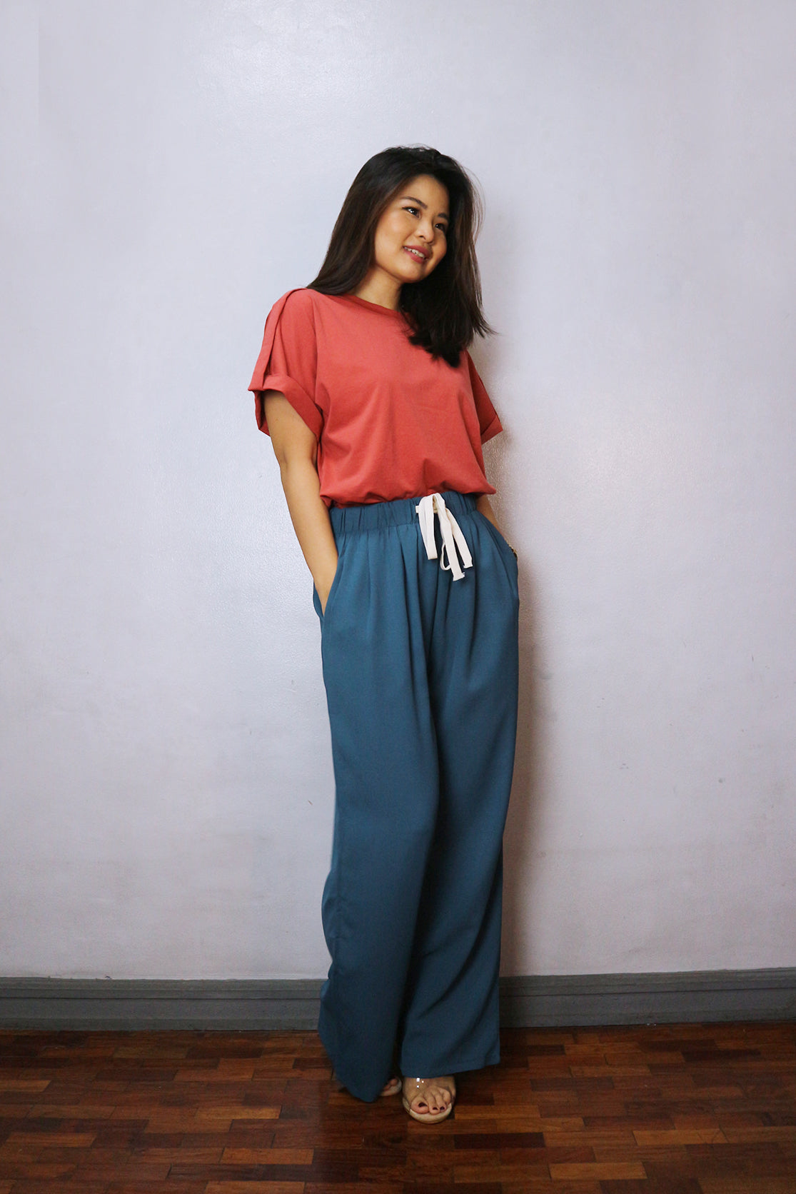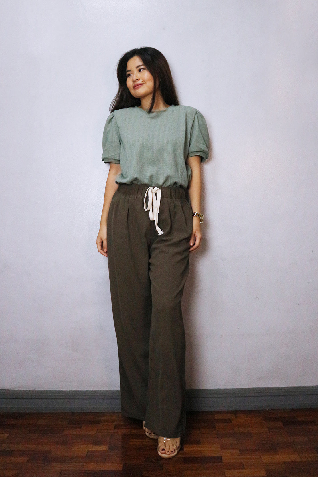 Drawstring and gartered waist